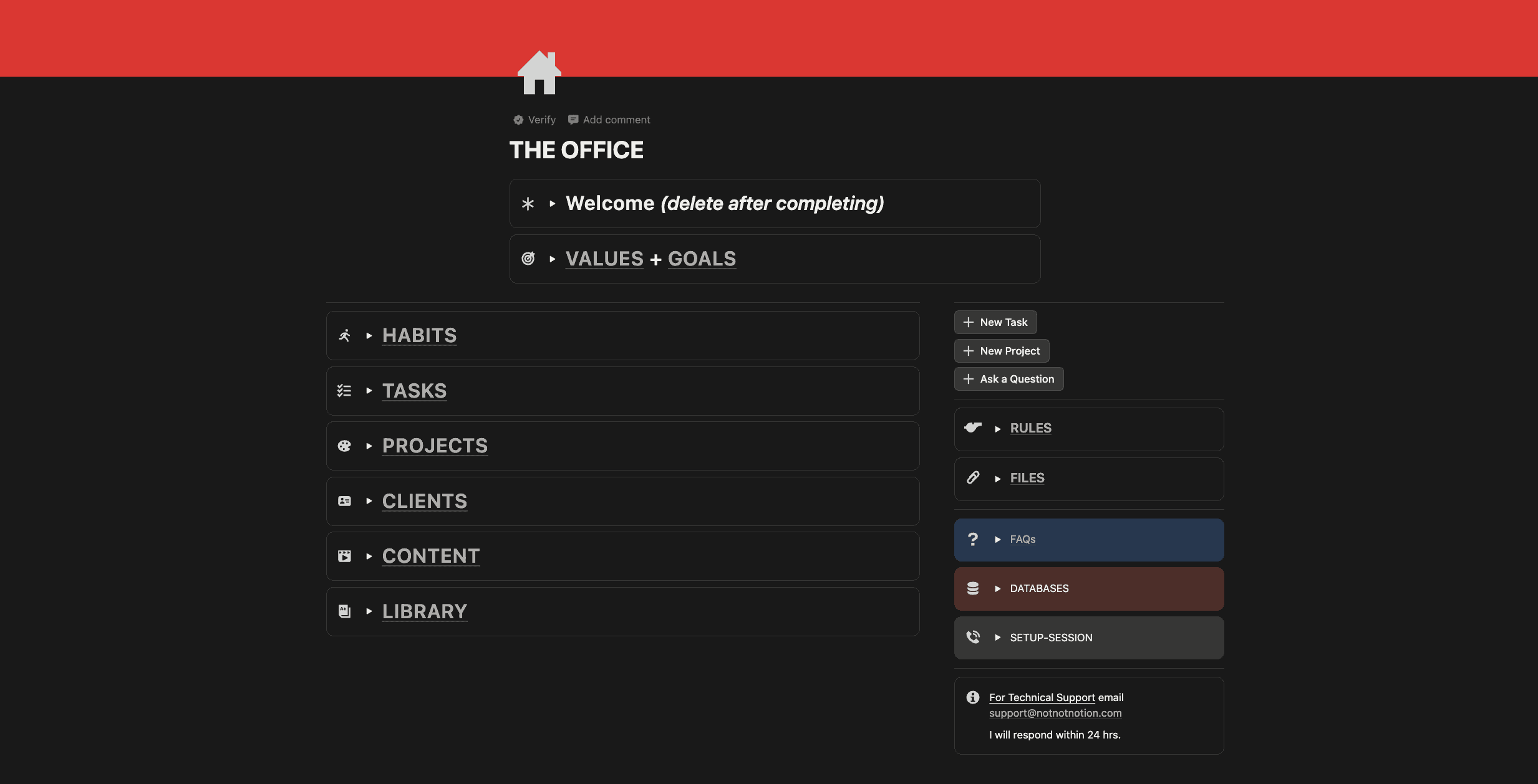 Notion is the container, not the skill being tested. You do not need to be a Notion power user, and you do not need to customize everything for this to work. The value of THE OFFICE is not in technical complexity—it is in how the structure guides your behavior and decision-making.